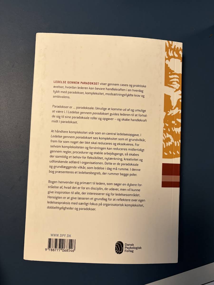 I Ledelse gennem paradokset udforsker Lotte S. Lüscher, erhvervspsykolog med en PhD i ledelse, hvordan to tilsyneladende modstridende ledelsesparadigmer – den moderne, direktiv orienterede tilgang og den postmoderne, medinddragende og coachende tilgang – kan forenes til ét sammenhængende begreb. Med udgangspunkt i erfaring fra både private og offentlige virksomheder tilbyder bogen en praksisnær tilgang, der afspejler den komplekse virkelighed, dagens ledere møder. Bogen præsenterer paradoksledelse som et redskab, der hjælper ledere og ledergrupper med at bevare handlekraft i mødet med organisatorisk kompleksitet og uoverskuelige problemstillinger. Gennem en række konkrete eksempler og cases illustrerer Lüscher, hvordan integrationen af begge paradigmer kan skabe en mere dynamisk og fleksibel ledelsespraksis. Ledelse gennem paradokset henvender sig til dem, der søger en dybere forståelse af det moderne lederfag og ønsker inspiration til at navigere i en foranderlig verden.