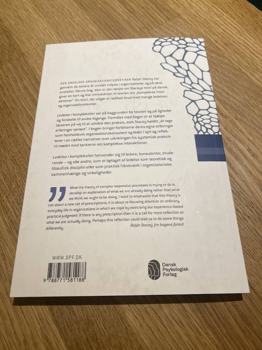 "Ledelse i kompleksitet" byder på en indsigtsfuld introduktion til de komplekse interaktioner, som den engelske organisationsteoretiker Ralph Stacey har gjort kendt. Pernille Thorup og Karina Solsø præsenterer en kortfattet, men dybdegående redegørelse for, hvordan denne teori adskiller sig fra traditionelle ledelses- og organisationsmodeller, og samtidig åbner op for nye perspektiver på organisationers dynamik. Med et solidt fundament i egne erfaringer fra både ledelses- og konsulentpraksis, guider bogen læseren gennem teorien om komplekse interaktioner. Den opfordrer til en seriøs tilgang til at lære af erfaringer og bliver et værdifuldt redskab for ledere, konsulenter og studerende, der ønsker at udforske, hvordan teori og praksis kan gå hånd i hånd i nutidens komplekse organisatoriske landskab.