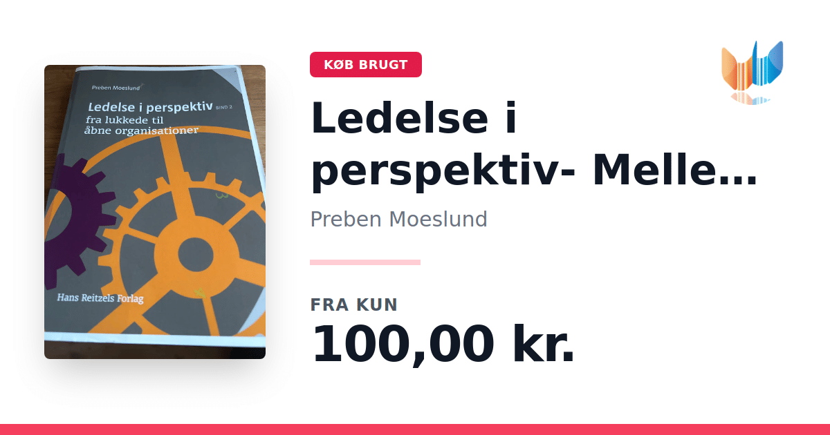 Lige nu kan du købe "Ledelse i perspektiv- Mellem tradition og refleksion" af Preben Moeslund til kun 100,00 kr. Bogen du ser her er brugt, og i god stand. Vi har i øjeblikket 4 eksemplarer til salg af "Ledelse i perspektiv- Mellem tradition og refleksion", så husk at se de forskellige udgaver.
