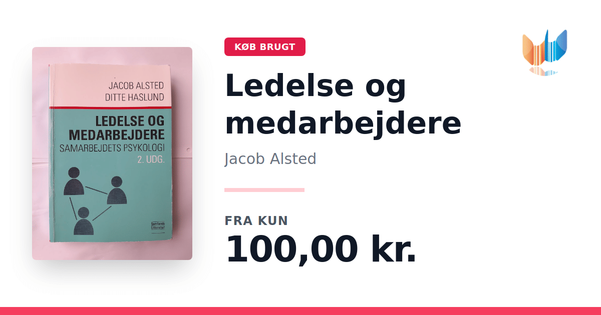 Lige nu kan du købe "Ledelse og medarbejdere" af Jacob Alsted til kun 100,00 kr. Bogen du ser her er brugt, og i god stand. Vi har i øjeblikket 4 eksemplarer til salg af "Ledelse og medarbejdere", så husk at se de forskellige udgaver.