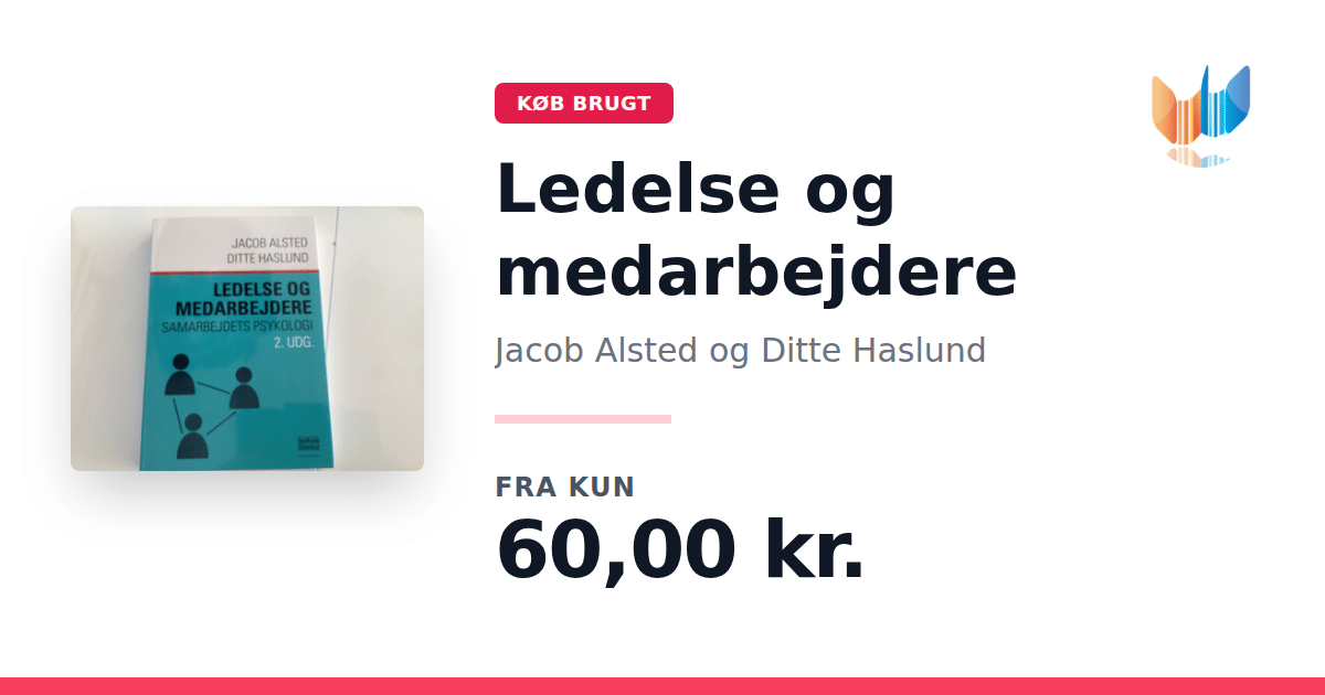 Lige nu kan du købe "Ledelse og medarbejdere" af Jacob Alsted og Ditte Haslund til kun 60,00 kr. Bogen du ser her er brugt, og i god stand. Vi har i øjeblikket 6 eksemplarer til salg af "Ledelse og medarbejdere", så husk at se de forskellige udgaver.