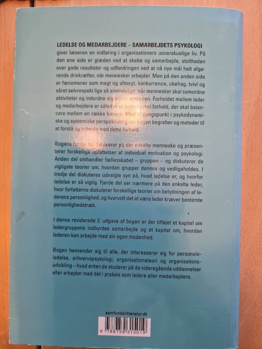 Bogen henvender sig til personer, der interesserer sig for personaleledelse, erhvervspsykologi, organisationsteori og organisationsudvikling. Den giver en indføring i organisationers liv og de psykologiske faktorer, der spiller ind i moderne ledelse. Bogen er opdelt i fire hovedafsnit: "Medarbejderen i fællesskabet", "Gruppeprocesser", "Ledelse" og "Lederens personlighed".