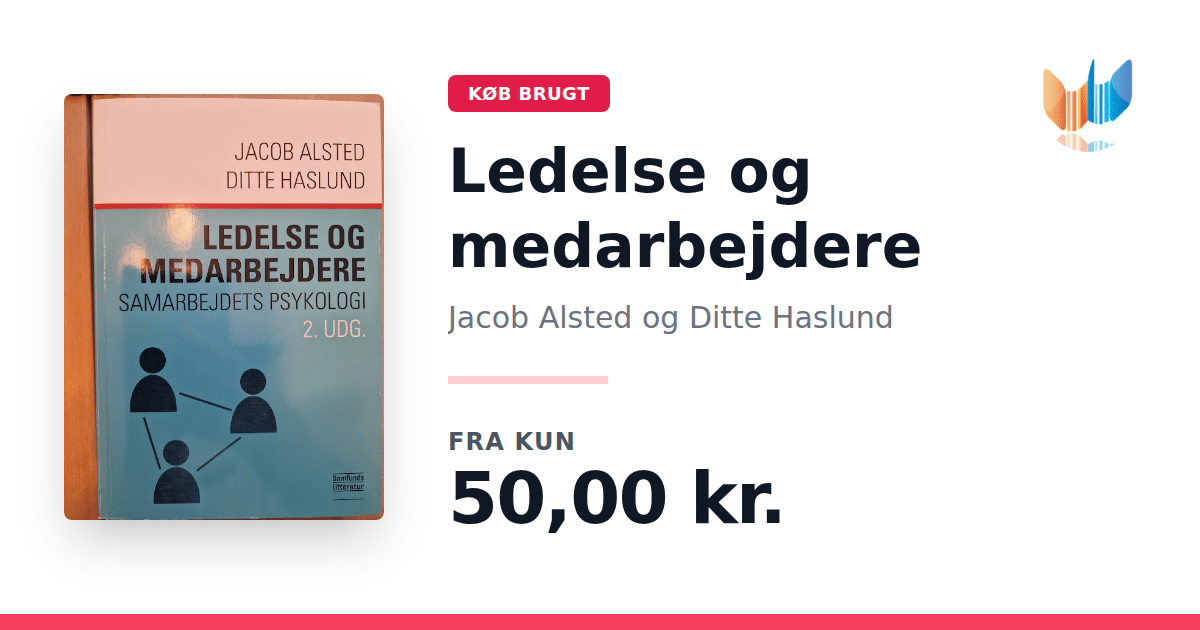 Lige nu kan du købe "Ledelse og medarbejdere" af Jacob Alsted og Ditte Haslund til kun 50,00 kr. Bogen du ser her er brugt, og i perfekt stand. Vi har i øjeblikket 5 eksemplarer til salg af "Ledelse og medarbejdere", så husk at se de forskellige udgaver.