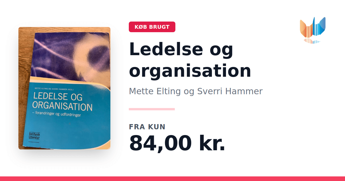 Lige nu kan du købe "Ledelse og organisation" af Mette Elting og Sverri Hammer til kun 84,00 kr. Bogen du ser her er brugt, og i perfekt stand. Vi har i øjeblikket 10 eksemplarer til salg af "Ledelse og organisation", så husk at se de forskellige udgaver.