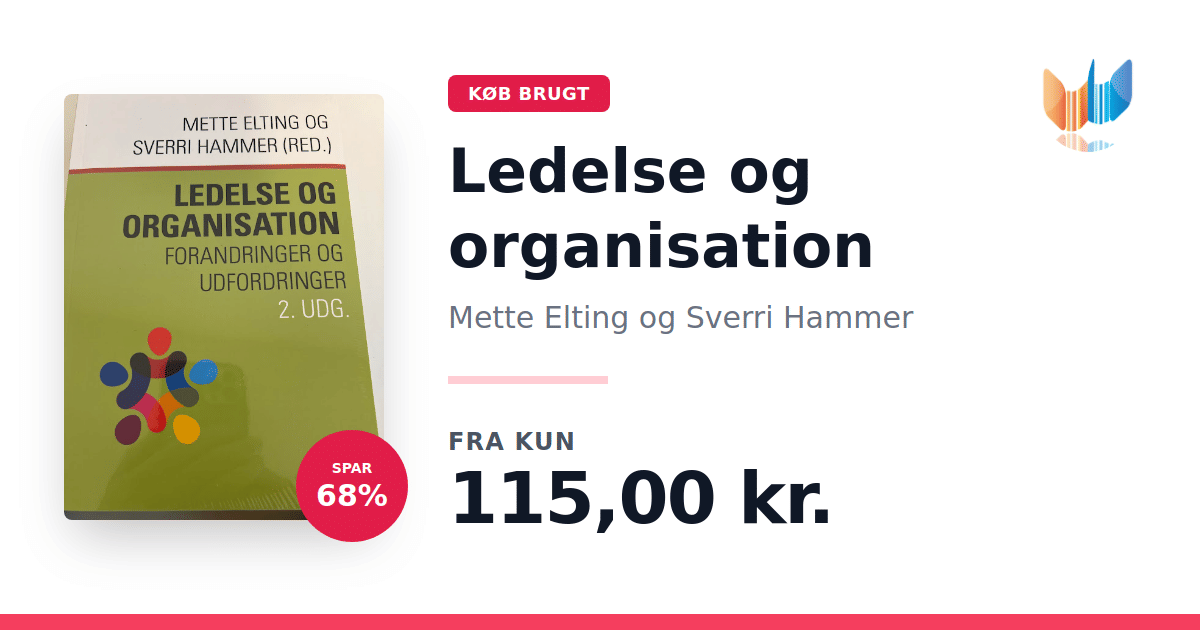 Lige nu kan du købe "Ledelse og organisation" af Mette Elting og Sverri Hammer til kun 115,00 kr. Du sparer hele 68% af nyprisen! Bogen du ser her er brugt, og i perfekt stand. Vi har i øjeblikket 10 eksemplarer til salg af "Ledelse og organisation", så husk at se de forskellige udgaver.