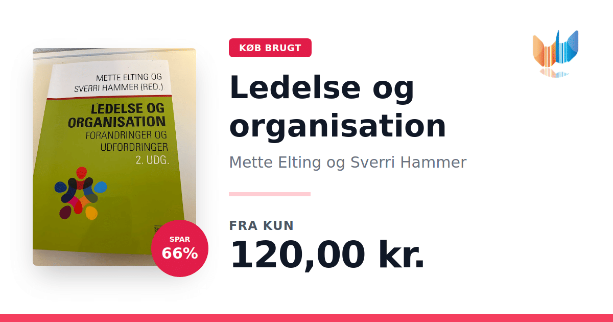 Lige nu kan du købe "Ledelse og organisation" af Mette Elting og Sverri Hammer til kun 120,00 kr. Du sparer hele 66% af nyprisen! Bogen du ser her er brugt, og i perfekt stand. Vi har i øjeblikket 10 eksemplarer til salg af "Ledelse og organisation", så husk at se de forskellige udgaver.