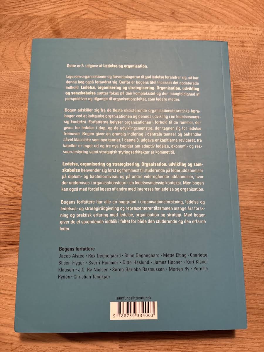 "Ledelse, organisering og strategisering" er allerede blevet en fast reference inden for virksomhedsledelse, og i denne tredje udgave kombineres teoretisk dybde med praktiske eksempler, der sætter fokus på de stadigt foranderlige rammer for ledelse og organisation. Mette Elting formidler med skarpsindighed, hvordan organisationens udvikling løbende påvirker de forventninger, der stilles til ledelsesprocesser. I denne opdaterede udgave er indholdet revideret for at afspejle samtidens krav med tre nye kapitler om økonomistyring, strategisk styringsarkitektur og adaptiv ledelse, mens tre ældre kapitler er blevet udskiftet. Bogen præsenterer et bredt spektrum af både klassiske og moderne teorier og giver dermed en grundig indføring i, hvordan komplekse og mangfoldige perspektiver i organisationslivet kan forstås og anvendes. Velegnet til studerende på lederuddannelser og andre med interesse for ledelse og organisation, tilbyder "Ledelse, organisering og strategisering" et solidt fundament, der kombinerer akademisk forskning med praktisk anvendelighed. Samfundslitteraturs udgave fra 2019 er et uundværligt værktøj for alle, som ønsker at navigere i og forstå det dynamiske felt af ledelse og organisationsudvikling.