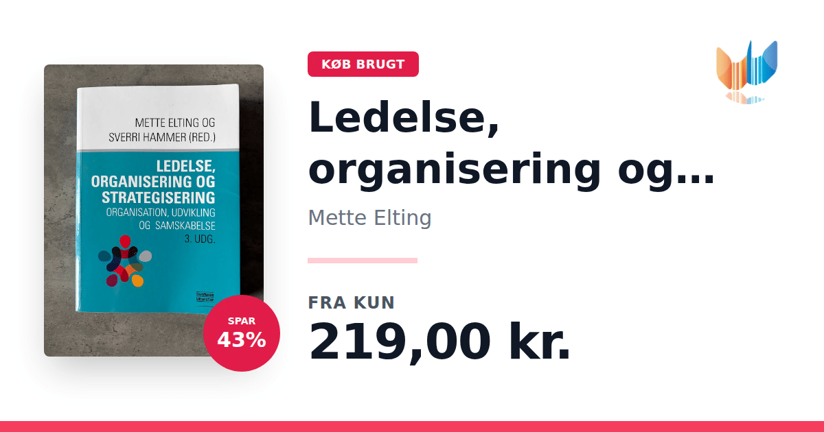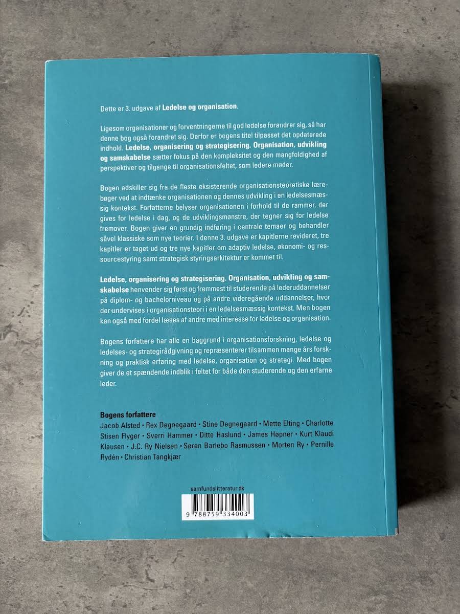 "Ledelse, organisering og strategisering" er allerede blevet en fast reference inden for virksomhedsledelse, og i denne tredje udgave kombineres teoretisk dybde med praktiske eksempler, der sætter fokus på de stadigt foranderlige rammer for ledelse og organisation. Mette Elting formidler med skarpsindighed, hvordan organisationens udvikling løbende påvirker de forventninger, der stilles til ledelsesprocesser. I denne opdaterede udgave er indholdet revideret for at afspejle samtidens krav med tre nye kapitler om økonomistyring, strategisk styringsarkitektur og adaptiv ledelse, mens tre ældre kapitler er blevet udskiftet. Bogen præsenterer et bredt spektrum af både klassiske og moderne teorier og giver dermed en grundig indføring i, hvordan komplekse og mangfoldige perspektiver i organisationslivet kan forstås og anvendes. Velegnet til studerende på lederuddannelser og andre med interesse for ledelse og organisation, tilbyder "Ledelse, organisering og strategisering" et solidt fundament, der kombinerer akademisk forskning med praktisk anvendelighed. Samfundslitteraturs udgave fra 2019 er et uundværligt værktøj for alle, som ønsker at navigere i og forstå det dynamiske felt af ledelse og organisationsudvikling.