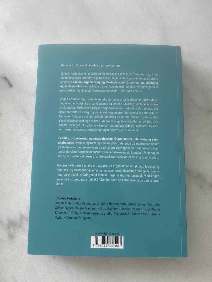 "Ledelse, organisering og strategisering" er allerede blevet en fast reference inden for virksomhedsledelse, og i denne tredje udgave kombineres teoretisk dybde med praktiske eksempler, der sætter fokus på de stadigt foranderlige rammer for ledelse og organisation. Mette Elting formidler med skarpsindighed, hvordan organisationens udvikling løbende påvirker de forventninger, der stilles til ledelsesprocesser. I denne opdaterede udgave er indholdet revideret for at afspejle samtidens krav med tre nye kapitler om økonomistyring, strategisk styringsarkitektur og adaptiv ledelse, mens tre ældre kapitler er blevet udskiftet. Bogen præsenterer et bredt spektrum af både klassiske og moderne teorier og giver dermed en grundig indføring i, hvordan komplekse og mangfoldige perspektiver i organisationslivet kan forstås og anvendes. Velegnet til studerende på lederuddannelser og andre med interesse for ledelse og organisation, tilbyder "Ledelse, organisering og strategisering" et solidt fundament, der kombinerer akademisk forskning med praktisk anvendelighed. Samfundslitteraturs udgave fra 2019 er et uundværligt værktøj for alle, som ønsker at navigere i og forstå det dynamiske felt af ledelse og organisationsudvikling.