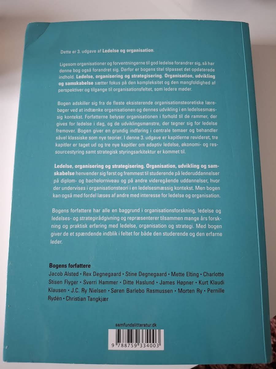 "Ledelse, organisering og strategisering" er allerede blevet en fast reference inden for virksomhedsledelse, og i denne tredje udgave kombineres teoretisk dybde med praktiske eksempler, der sætter fokus på de stadigt foranderlige rammer for ledelse og organisation. Mette Elting formidler med skarpsindighed, hvordan organisationens udvikling løbende påvirker de forventninger, der stilles til ledelsesprocesser. I denne opdaterede udgave er indholdet revideret for at afspejle samtidens krav med tre nye kapitler om økonomistyring, strategisk styringsarkitektur og adaptiv ledelse, mens tre ældre kapitler er blevet udskiftet. Bogen præsenterer et bredt spektrum af både klassiske og moderne teorier og giver dermed en grundig indføring i, hvordan komplekse og mangfoldige perspektiver i organisationslivet kan forstås og anvendes. Velegnet til studerende på lederuddannelser og andre med interesse for ledelse og organisation, tilbyder "Ledelse, organisering og strategisering" et solidt fundament, der kombinerer akademisk forskning med praktisk anvendelighed. Samfundslitteraturs udgave fra 2019 er et uundværligt værktøj for alle, som ønsker at navigere i og forstå det dynamiske felt af ledelse og organisationsudvikling.