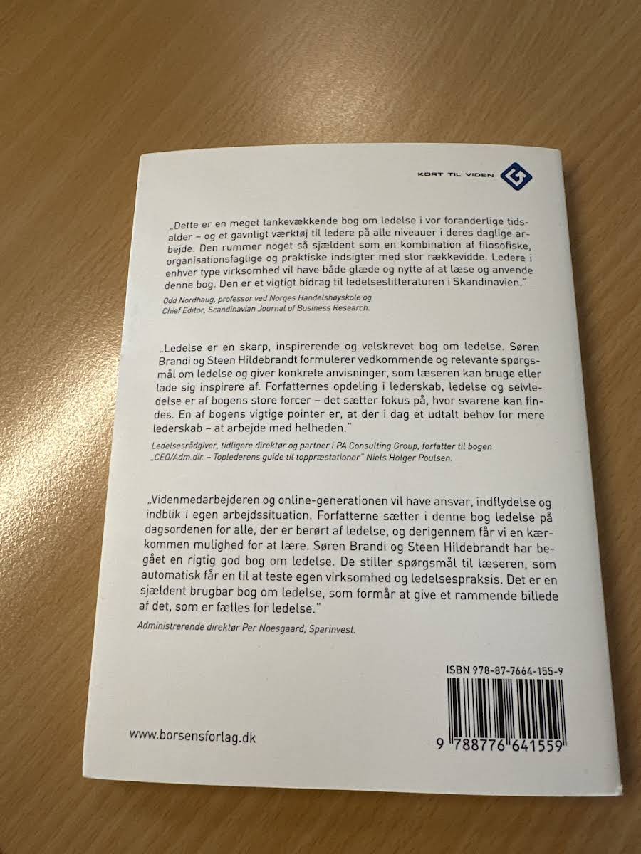 Ledelse er nøglen til at omsætte visioner til handling og skabe resultater, både i det personlige og det professionelle rum. I denne bog på 104 sider dykker forfatterne ned i, hvordan vejen til målet lige så vigtig er som selve resultatet. Bogen invitere læseren til at reflektere over, hvad der egentlig ligger bag god ledelse, og hvilke valg der kan skabe forandring. Med udgangspunkt i en kritisk og nysgerrig tilgang udfordrer bogen konventionelle ledelsesideer og præsenterer samtidig et sprog og holdninger, som fremmer dialog og bevidsthed om emnet. Ved at belyse forskellige ledelsesformer og perspektiver giver bogen et solidt fundament for dem, der ønsker at forstå de mange facetter af ledelse i vores moderne samfund.