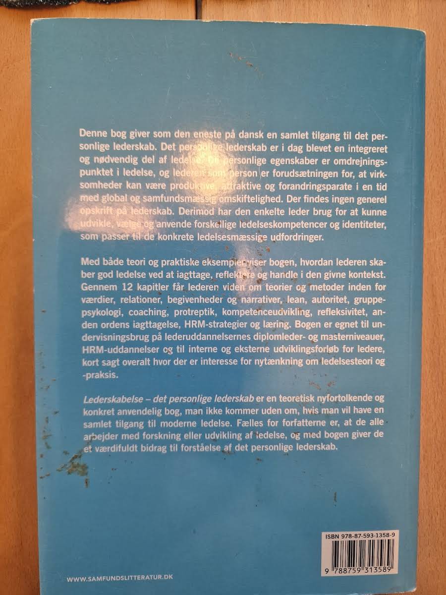 Med *Lederskabelse - det personlige lederskab* præsenteres den eneste udgivelse på dansk, der tilbyder en samlet tilgang til det personlige lederskab. I dag udgør netop dette aspekt en uundværlig og fuldt integreret del af moderne ledelse. Lederens personlige egenskaber fungerer som selve omdrejningspunktet for at lykkes i rollen. Bogen sætter fokus på, hvordan lederen som individ er den helt afgørende forudsætning for, at virksomheder kan forblive produktive, attraktive og omstillingsparate i en tid, der er præget af stor global og samfundsmæssig omskiftelighed.