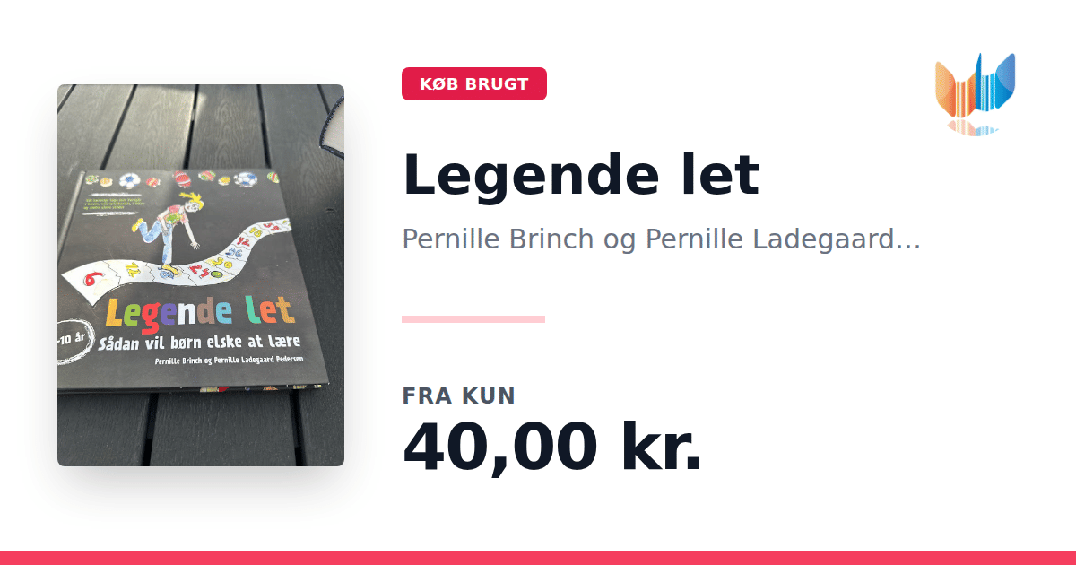 Lige nu kan du købe "Legende let" af Pernille Brinch og Pernille Ladegaard Pedersen til kun 40,00 kr. Bogen du ser her er brugt, og i perfekt stand. Vi har i øjeblikket kun et enkelt eksemplar til salg af "Legende let", så slå til mens du kan!