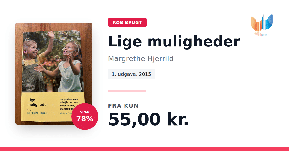 Lige nu kan du købe "Lige muligheder" af Margrethe Hjerrild til kun 55,00 kr. Du sparer hele 78% af nyprisen! Bogen du ser her er brugt, og i god stand. Vi har i øjeblikket kun et enkelt eksemplar til salg af "Lige muligheder", så slå til mens du kan!