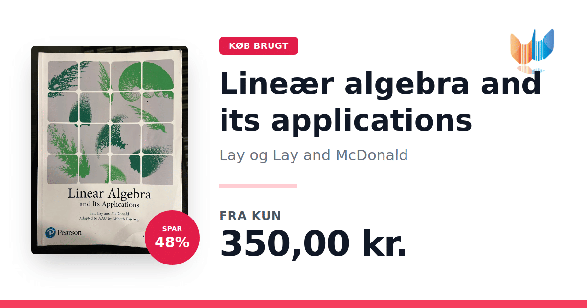 Linear Algebra and Its Applications, Global Edition er den anerkendte 5. udgave (2015) af David Lay, Steven Lay og Judi McDonald. Med sine 576 sider giver bogen en grundig, men tilgængelig indføring i lineær algebraens kernebegreber og metoder - fra matrixregning og determinanter til egenværdier og diagonaliseringsprocesser. I stedet for at springe direkte til abstrakte definitioner præsenteres de mest udfordrende emner - som lineær uafhængighed, spans, underrum, vektorrum og lineære transformationer - først i det velkendte Rⁿ. Her bygges forståelsen systematisk op og styrkes gennem tilbagevendende eksempler, så overgangen til mere generelle og teoretiske rammer bliver naturlig og overskuelig. Denne globale udgave er skræddersyet til universitetskurser i lineær algebra og kombinerer klar pædagogik med et væld af øvelser og illustrative figurer. Både studerende og undervisere får med dette værk et solidt fundament til at mestre de centrale teorier og anvendelser inden for faget.
