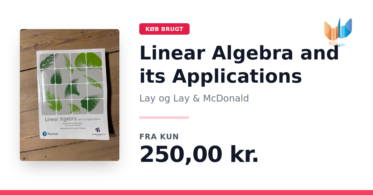 Lige nu kan du købe "Linear Algebra and its Applications" af Lay og Lay & McDonald til kun 250,00 kr. Bogen du ser her er brugt, og i god stand. Vi har i øjeblikket 4 eksemplarer til salg af "Linear Algebra and Its Applications", så husk at se de forskellige udgaver.