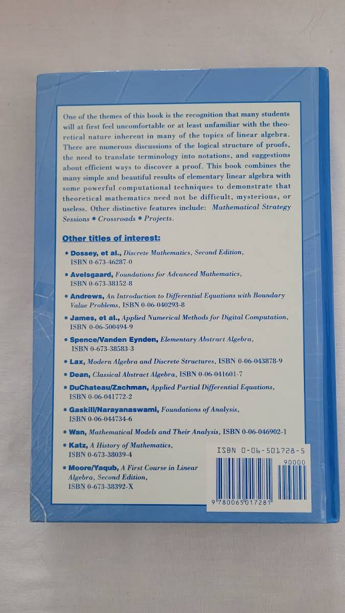 Linear Algebra: Gateway to Mathematics af Robert Messer bygger en bro mellem den abstrakte teori og de studerendes hidtidige erfaringer. Teksten er udviklet med tanke på dem, der måske kun har mødt matematisk teori i begrænset omfang, og som har brug for både motivation og klare forklaringer til at tage det næste skridt. Gennem bogen præsenteres læseren for dybdegående diskussioner om bevisers logiske struktur, betydningen af at omsætte terminologi til præcis notation samt smidige fremgangsmåder til selv at opdage og formulere beviser. Messer kombinerer simple og elegante resultater fra elementær lineær algebra med stærke beregningsteknikker, så teorien fremstår både tilgængelig og relevant. Ved at vise, at teoretisk matematik hverken behøver at være ufremkommelig eller ubrugelig, tilbyder bogen en unik balance mellem abstraktion og praktisk anvendelse. Den henvender sig primært til det andet kursus i lineær algebra - eller som et første kursus for undervisere, der ønsker en mere teoretisk tilgang.