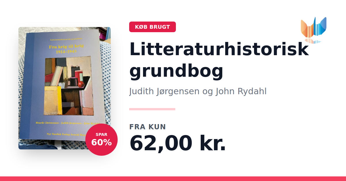 Lige nu kan du købe "Litteraturhistorisk grundbog" af Judith Jørgensen og John Rydahl til kun 62,00 kr. Du sparer hele 60% af nyprisen! Bogen du ser her er brugt, og i god stand. Vi har i øjeblikket kun et enkelt eksemplar til salg af "Litteraturhistorisk grundbog", så slå til mens du kan!