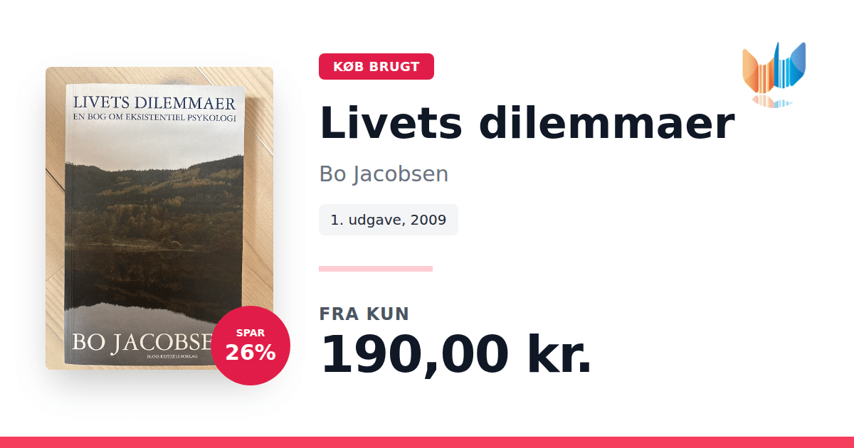 Lige nu kan du købe "Livets dilemmaer" af Bo Jacobsen til kun 190,00 kr. Du sparer hele 26% af nyprisen! Bogen du ser her er brugt, og i perfekt stand. Vi har i øjeblikket kun et enkelt eksemplar til salg af "Livets dilemmaer", så slå til mens du kan!