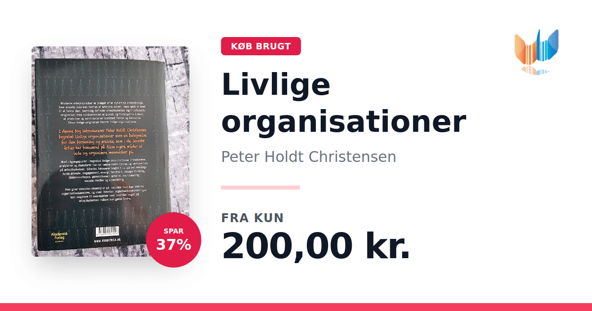 Lige nu kan du købe "Livlige organisationer" af Peter Holdt Christensen til kun 200,00 kr. Du sparer hele 37% af nyprisen! Bogen du ser her er brugt, og i perfekt stand. Vi har i øjeblikket 3 eksemplarer til salg af "Livlige organisationer", så husk at se de forskellige udgaver.