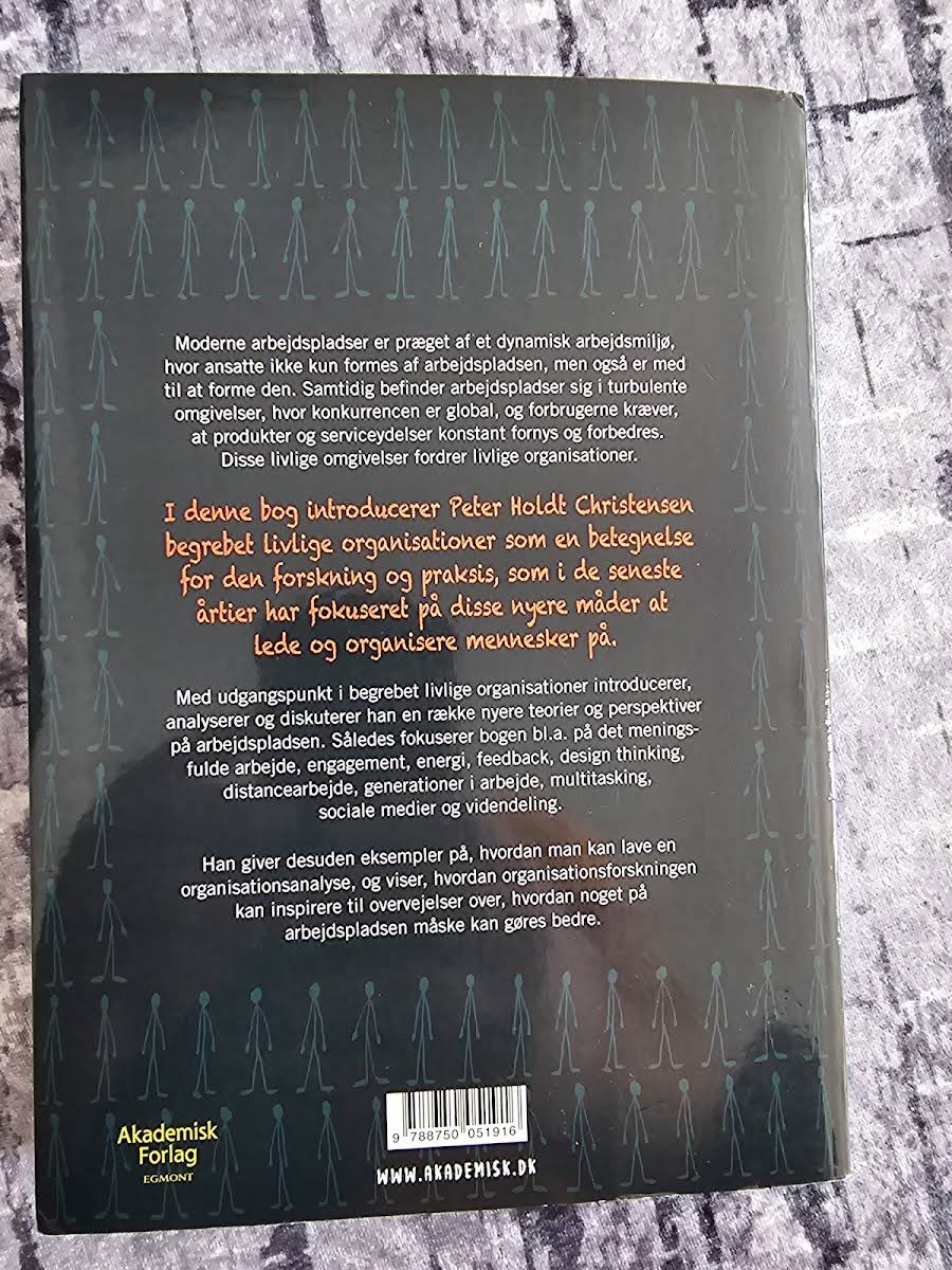 I en tid, hvor arbejdspladser undergår markante forandringer, udfordres den traditionelle opfattelse af ledelse og organisation. Peter Holdt Christensen præsenterer i "Livlige organisationer" et innovativt perspektiv, der tager udgangspunkt i, hvordan medarbejdere både formes af og former arbejdspladsen. Bogen fremhæver, hvordan global konkurrence og et stadigt skiftende forbrugsmønster sætter nye krav til udvikling og fornyelse af produkter og serviceydelser. Med udgangspunkt i den nyeste forskning på området introduceres en række moderne teorier og metoder, som udvider de klassiske organisationsteorier. Christensen belyser centrale emner som meningsfuldt arbejde, engagement, feedback, design thinking, distancearbejde, generationsskifte, multitasking, sociale medier og videndeling. Gennem velvalgte eksempler på organisationsanalyse åbner bogen op for nye overvejelser om, hvordan man kan optimere arbejdsprocesser i tiden, hvor forandring blot er den eneste konstant.
