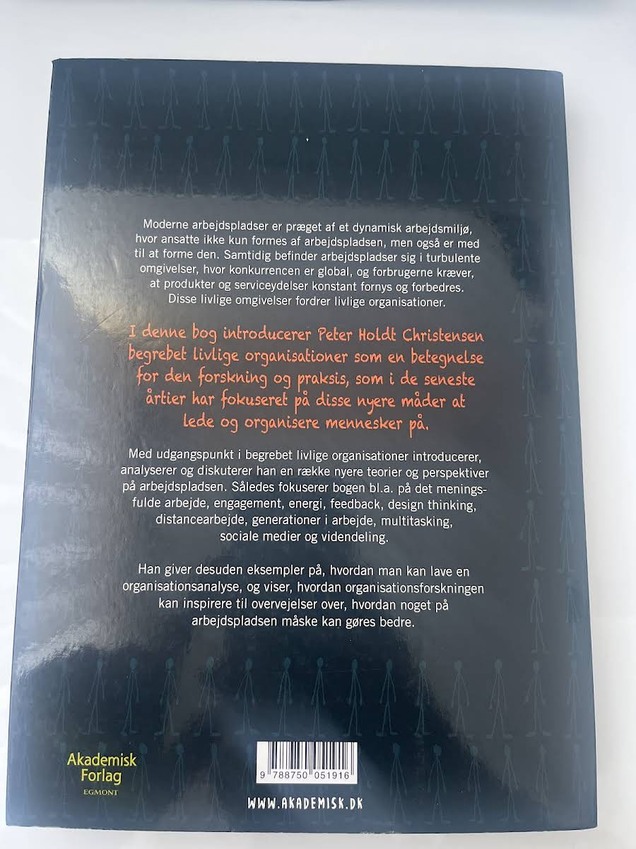 I en tid, hvor arbejdspladser undergår markante forandringer, udfordres den traditionelle opfattelse af ledelse og organisation. Peter Holdt Christensen præsenterer i "Livlige organisationer" et innovativt perspektiv, der tager udgangspunkt i, hvordan medarbejdere både formes af og former arbejdspladsen. Bogen fremhæver, hvordan global konkurrence og et stadigt skiftende forbrugsmønster sætter nye krav til udvikling og fornyelse af produkter og serviceydelser. Med udgangspunkt i den nyeste forskning på området introduceres en række moderne teorier og metoder, som udvider de klassiske organisationsteorier. Christensen belyser centrale emner som meningsfuldt arbejde, engagement, feedback, design thinking, distancearbejde, generationsskifte, multitasking, sociale medier og videndeling. Gennem velvalgte eksempler på organisationsanalyse åbner bogen op for nye overvejelser om, hvordan man kan optimere arbejdsprocesser i tiden, hvor forandring blot er den eneste konstant.