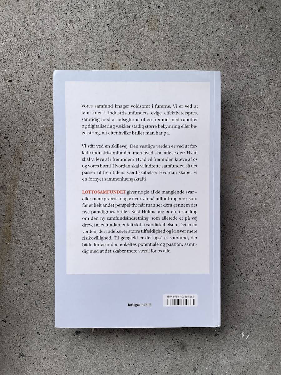 Det vestlige samfund er under massivt pres. Industrisamfundets konstante krav om effektivitet er ved at udmatte os, og udsigten til en æra præget af digitalisering og robotteknologi skaber enten dyb bekymring eller stor begejstring, alt afhængigt af hvem man spørger. Vi befinder os ved en afgørende skillevej, hvor vi er i færd med at lægge industrisamfundet bag os. Men hvad er det næste kapitel? Hvordan skaber vi et nyt grundlag at leve af, og hvilke krav vil den nye tidsalder stille til os og vores børn? Den store udfordring ligger i at finde ud af, hvordan vi bedst omstrukturerer samfundet til at understøtte fremtidens værdiskabelse og samtidig sikrer en fornyet sammenhængskraft. I Lottosamfundet leverer forfatter Keld Holm en række nyskabende svar på disse presserende spørgsmål. Set gennem et helt nyt paradigmes briller tegner han et billede af en ny samfundsindretning, der allerede spirer frem som følge af et fundamentalt skift i måden, vi skaber værdi på. Det er en fremtidig verden, der vil rumme en højere grad af tilfældighed og kræve markant mere risikovillighed af os. Til gengæld beskriver bogen et samfund, der i langt højere grad vil frisætte det enkelte menneskes passion og potentiale, og dermed i sidste ende skabe mere værdi for os alle.