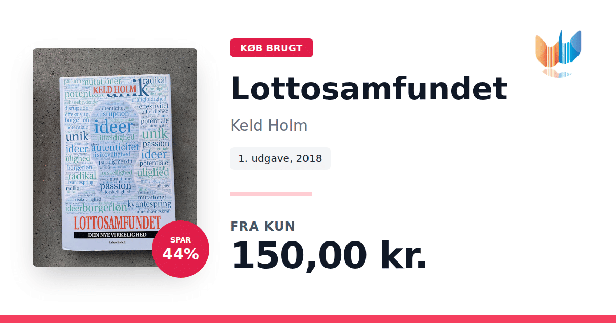 Lige nu kan du købe "Lottosamfundet" af Keld Holm til kun 150,00 kr. Du sparer hele 44% af nyprisen! Bogen du ser her er brugt, og i perfekt stand. Vi har i øjeblikket kun et enkelt eksemplar til salg af "Lottosamfundet", så slå til mens du kan!