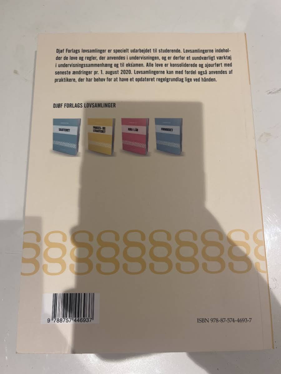 Lovsamling 2020 - Proces- og strafferet indgår i den anerkendte Lovsamlinger-serie og rummer alle relevante og opdaterede lovtekster inden for procesret og strafferetspleje. Materialet er nøje udvalgt og tilrettelagt med særligt fokus på de studieordninger, der dækker både teoretiske og praktiske aspekter af straffeprocessen. Bogen fungerer samtidigt som et praktisk opslagsværk for jurister og andre fagfolk, der har behov for et hurtigt overblik over den gældende lovgivning. Med en klar struktur og en let tilgængelig straffeprocessuel oversigt sikrer den, at du altid har det nødvendige regelgrundlag ved hånden.