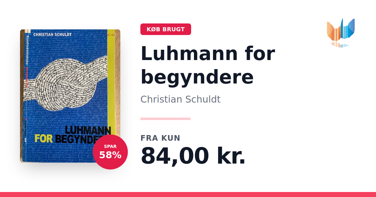 Lige nu kan du købe "Luhmann for begyndere" af Christian Schuldt til kun 84,00 kr. Du sparer hele 58% af nyprisen! Bogen du ser her er brugt, og i god stand. Vi har i øjeblikket kun et enkelt eksemplar til salg af "Luhmann for begyndere", så slå til mens du kan!