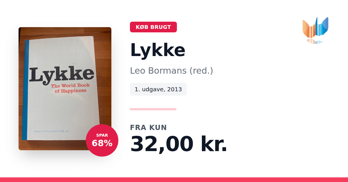 Lige nu kan du købe "Lykke" af Leo Bormans (red.) til kun 32,00 kr. Du sparer hele 68% af nyprisen! Bogen du ser her er brugt, og i perfekt stand. Vi har i øjeblikket kun et enkelt eksemplar til salg af "Lykke", så slå til mens du kan!