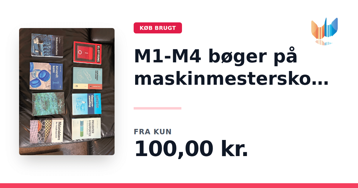 Jeg sælger lidt forskellige bøger fra M1 til M4 bøger fra Maskinemesterskolen. Jeg begyndte på skolen i 2024. Skriv endelig ved interesse, så finder vi en passende pris der er gældende og fair! OBS! Mængde rabat selvfølgelig! 🙌 Kan sendes eller afhentes på Nørrebro 😊