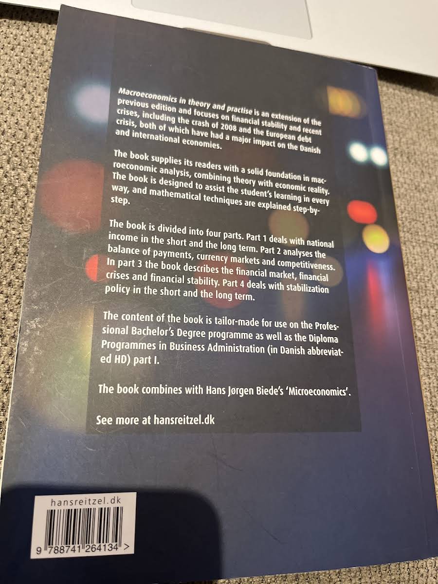 Macroeconomics - theory and practice, 2. udgave, er en videreudvikling af den forrige udgave med øget fokus på finansiel stabilitet og de seneste kriser, herunder finanskrisen i 2008 og den europæiske gældskrise. Bogen formidler en solid forståelse af makroøkonomisk analyse, hvor teori og økonomisk praksis går hånd i hånd. Med en trin-for-trin redegørelse af de matematiske metoder, er bogen designet til at understøtte studerendes læring og bidrage til en dybdegående forståelse af centrale makroøkonomiske emner. Indholdet er struktureret i fire dele, der omhandler henholdsvis nationalindkomst i både kort og lang sigt, betalingsbalance, valutamarkeder, konkurrenceevne, samt de finansielle markeder med deres kriser og stabilitetsudfordringer. Desuden behandler bogen stabiliseringspolitikkerne på både kort og lang sigt og er velegnet til uddannelser som professionsbachelorprogrammer og HD Deltagerkurser. Hans Jørgen Biedes tilgang gør det til et vigtigt redskab, der supplerer hans arbejde med mikroøkonomi og bidrager til en helhedsforståelse af den komplekse makroøkonomiske verden.