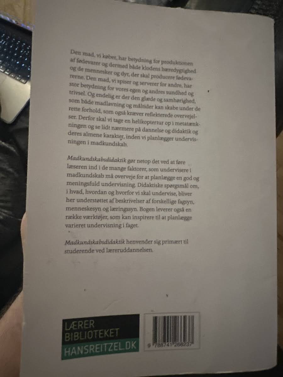 Madkundskabsdidaktik af Helle Brønnum Carlsen byder på en grundlæggende og nuanceret tilgang til, hvordan madundervisning kan planlægges og gennemføres med omtanke. I bogen sættes fokus på, hvordan vores valg af mad påvirker både vores sundhed, fællesskab og den bæredygtige produktion af fødevarer. Ved at perspektivere didaktiske overvejelser på en helhedsorienteret måde, udforskes de centrale spørgsmål om i hvad, hvordan og hvorfor, vi underviser i madkundskab. Gennem bogen præsenteres forskellige fagsyn, menneskesyn og læringssyn, der tilsammen giver undervisere et solidt redskabsfundament til at skabe en alsidig og meningsfuld undervisning. Med inspirerende værktøjer og teoretiske indsigter er Madkundskabsdidaktik en uundværlig ressource for studerende ved læreruddannelsen, der ønsker at engagere sig dybt i planlægningen af madkundskab.