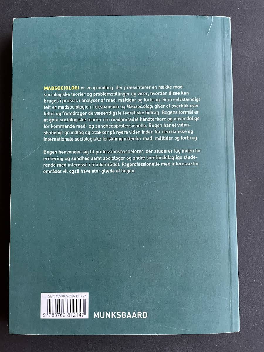 Madsociologi er en grundbog, der udforsker madens rolle og betydning ud fra et sociologisk perspektiv. Bogen gennemgår en række teorier og problemstillinger inden for madsociologien og demonstrerer, hvordan disse kan anvendes i praktiske analyser af mad og forbrug. Den videnskabelige tilgang sikrer, at læseren får et solidt teoretisk fundament baseret på både national og international forskning. Bogen er udformet med henblik på, at den skal gøre den komplekse viden om madens sociologiske dimension mere tilgængelig for kommende mad- og sundhedsprofessionelle. Madsociologi henvender sig primært til professionsbachelorstuderende inden for ernæring og sundhed, men den vil også være et værdifuldt redskab for fagprofessionelle, der søger en dybere forståelse af madens plads i samfundet.