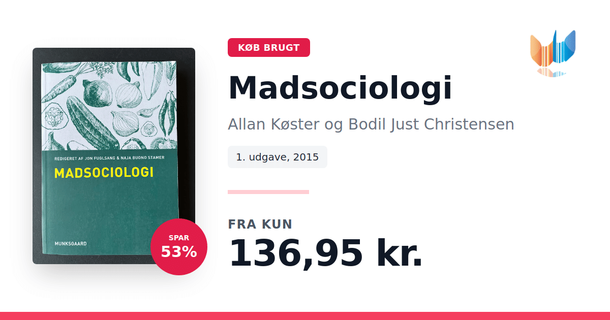 Lige nu kan du købe "Madsociologi" af Allan Køster og Bodil Just Christensen til kun 136,95 kr. Du sparer hele 54% af nyprisen! Bogen du ser her er brugt, og i perfekt stand. Vi har i øjeblikket 3 eksemplarer til salg af "Madsociologi", så husk at se de forskellige udgaver.
