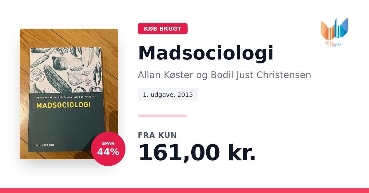 Madsociologi er en grundbog, der udforsker madens rolle og betydning ud fra et sociologisk perspektiv. Bogen gennemgår en række teorier og problemstillinger inden for madsociologien og demonstrerer, hvordan disse kan anvendes i praktiske analyser af mad og forbrug. Den videnskabelige tilgang sikrer, at læseren får et solidt teoretisk fundament baseret på både national og international forskning. Bogen er udformet med henblik på, at den skal gøre den komplekse viden om madens sociologiske dimension mere tilgængelig for kommende mad- og sundhedsprofessionelle. Madsociologi henvender sig primært til professionsbachelorstuderende inden for ernæring og sundhed, men den vil også være et værdifuldt redskab for fagprofessionelle, der søger en dybere forståelse af madens plads i samfundet.