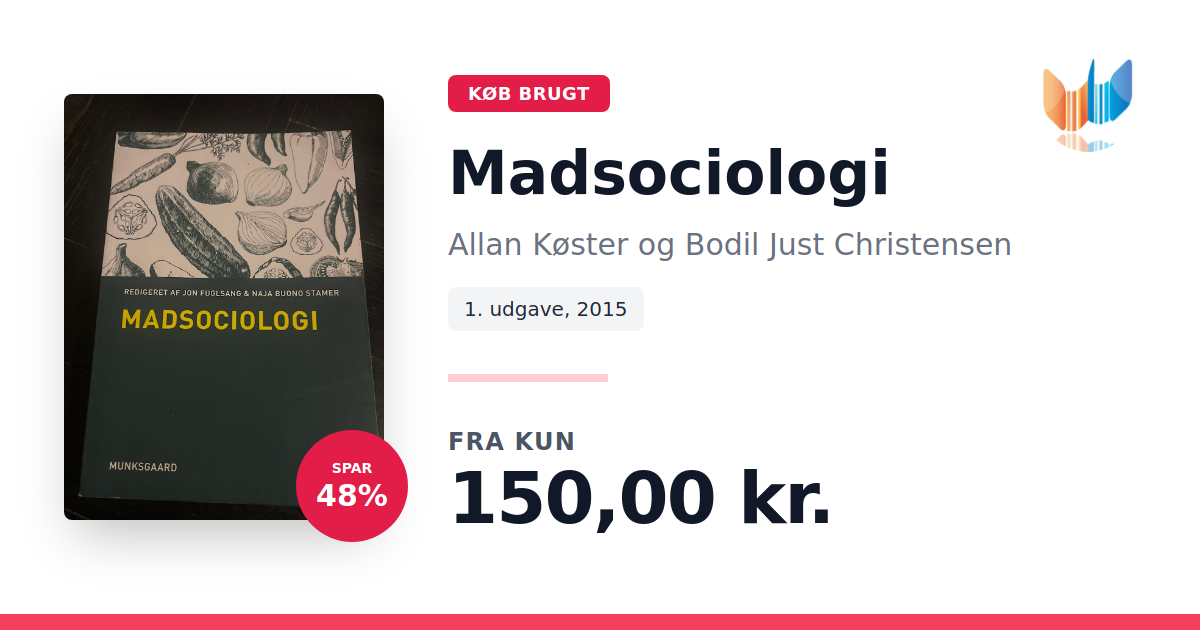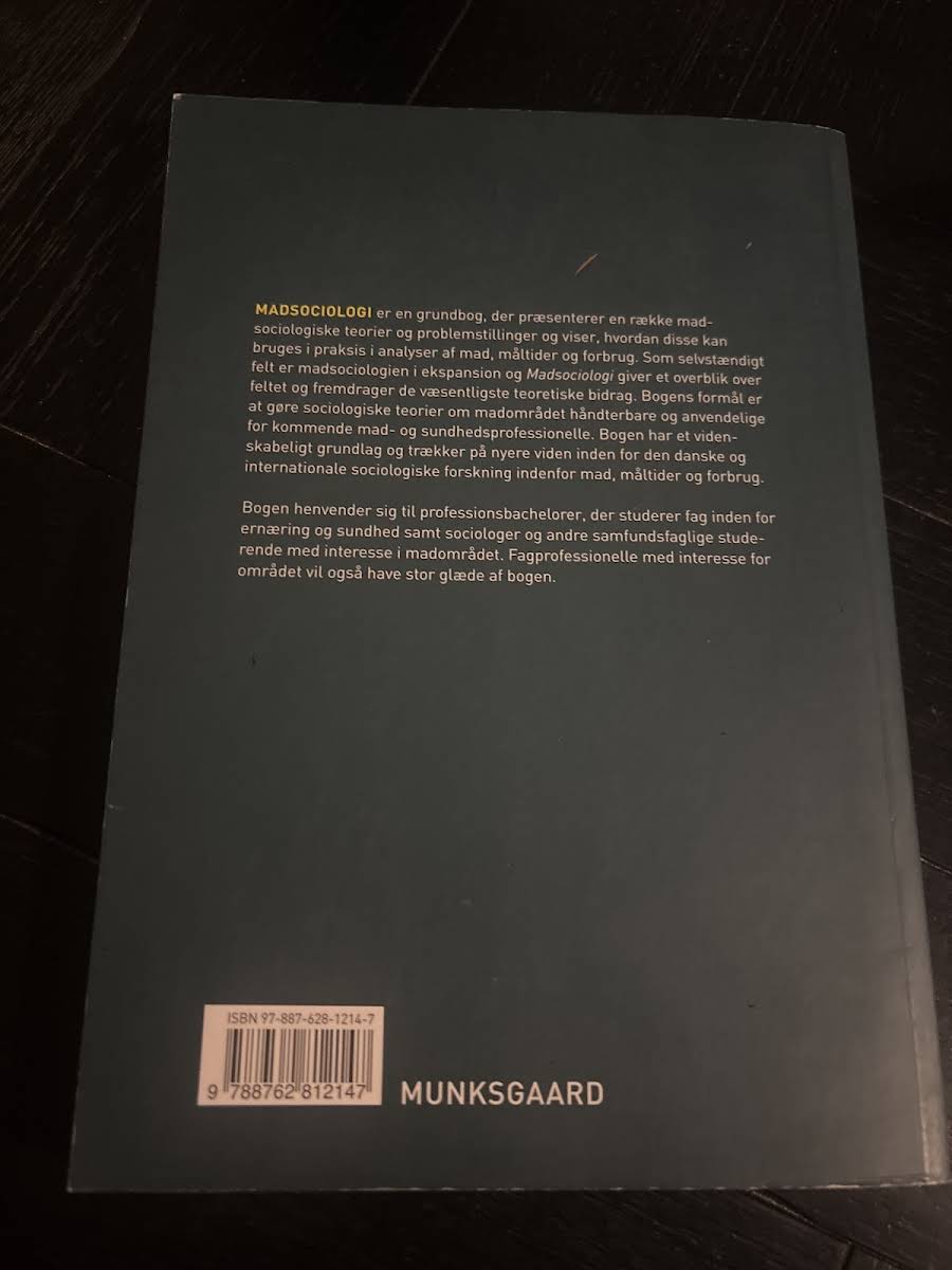 Madsociologi er en grundbog, der udforsker madens rolle og betydning ud fra et sociologisk perspektiv. Bogen gennemgår en række teorier og problemstillinger inden for madsociologien og demonstrerer, hvordan disse kan anvendes i praktiske analyser af mad og forbrug. Den videnskabelige tilgang sikrer, at læseren får et solidt teoretisk fundament baseret på både national og international forskning. Bogen er udformet med henblik på, at den skal gøre den komplekse viden om madens sociologiske dimension mere tilgængelig for kommende mad- og sundhedsprofessionelle. Madsociologi henvender sig primært til professionsbachelorstuderende inden for ernæring og sundhed, men den vil også være et værdifuldt redskab for fagprofessionelle, der søger en dybere forståelse af madens plads i samfundet.