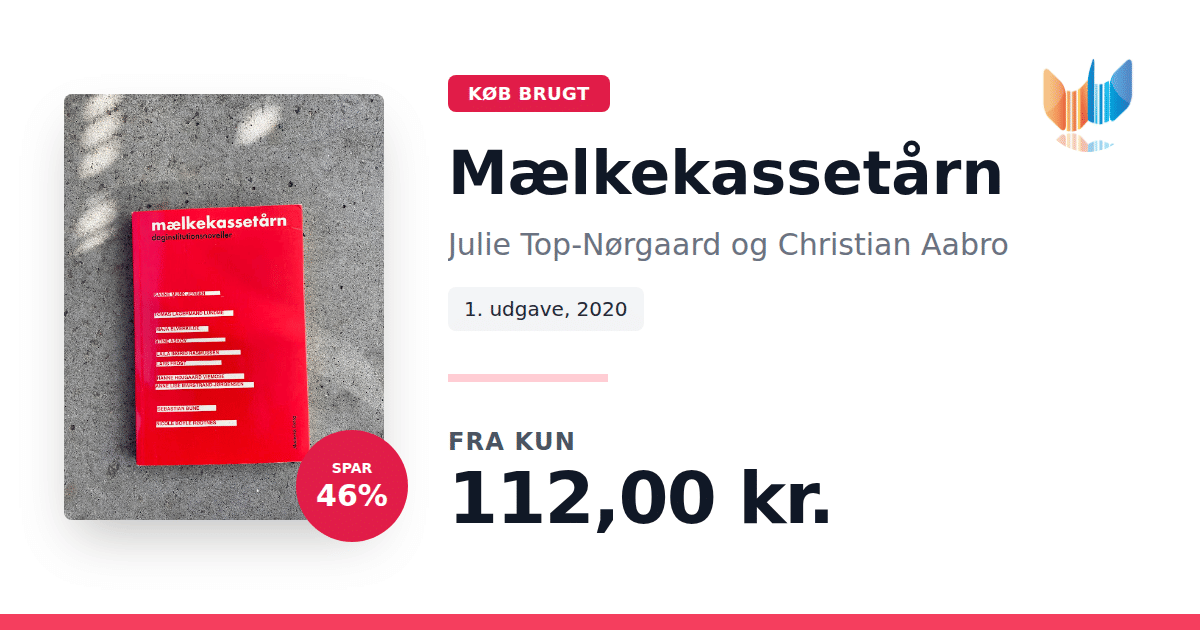 Lige nu kan du købe "Mælkekassetårn" af Julie Top-Nørgaard og Christian Aabro til kun 112,00 kr. Du sparer hele 46% af nyprisen! Bogen du ser her er brugt, og i perfekt stand. Vi har i øjeblikket kun et enkelt eksemplar til salg af "Mælkekassetårn", så slå til mens du kan!