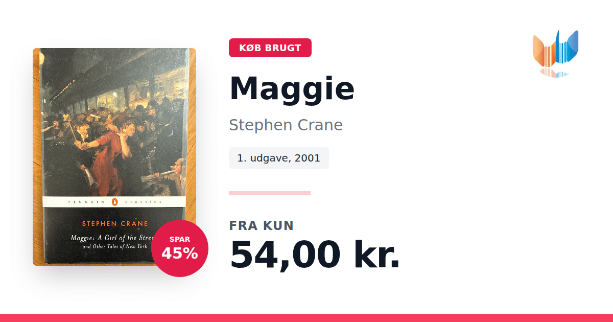 Lige nu kan du købe "Maggie" af Stephen Crane til kun 54,00 kr. Du sparer hele 45% af nyprisen! Bogen du ser her er brugt, og i god stand. Vi har i øjeblikket kun et enkelt eksemplar til salg af "Maggie", så slå til mens du kan!