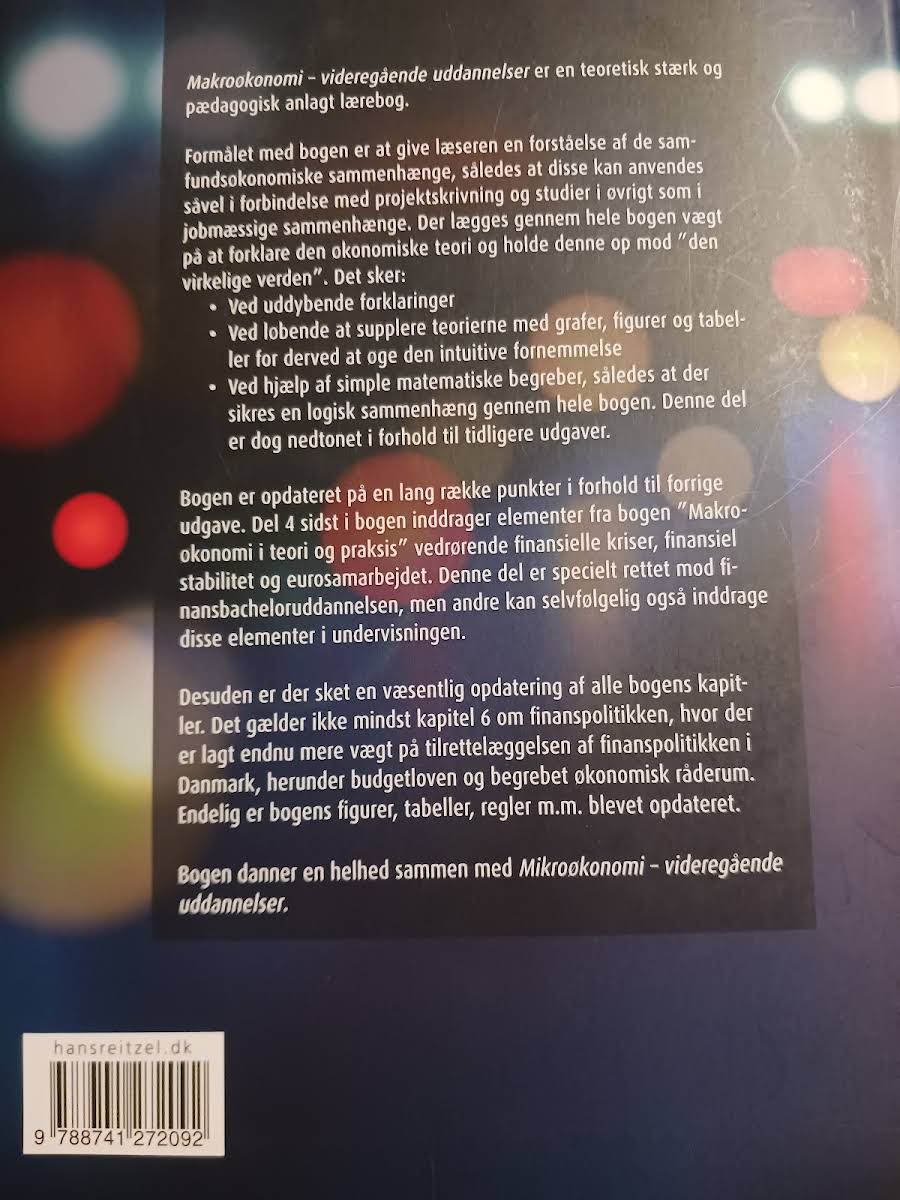 Makroøkonomi – videregående uddannelser er en omhyggeligt udtænkt lærebog, der på en teoretisk og pædagogisk måde belyser de makroøkonomiske sammenhænge. Bogen har til formål at give studerende og fagfolk en solid forståelse for økonomiens dynamikker, som er anvendelige både i akademiske studier og i erhvervslivets praktiske udfordringer. Gennem uddybende forklaringer og en række grafer, figurer og tabeller, opbygges den intuitive fornemmelse af de komplekse økonomiske teorier. I 5. udgave er der foretaget væsentlige opdateringer på tværs af alle kapitler, med særligt fokus på finanspolitikken og de økonomiske rammer for tilrettelæggelsen af denne i Danmark. Ved hjælp af simple matematiske begreber sikrer bogen en logisk og sammenhængende fremstilling, der løfter forståelsen af de centrale makroøkonomiske problemstillinger. Makroøkonomi – videregående uddannelser udgør således et uundværligt redskab til alle, der ønsker at styrke deres indsigt i de økonomiske kræfter, der former samfundet.