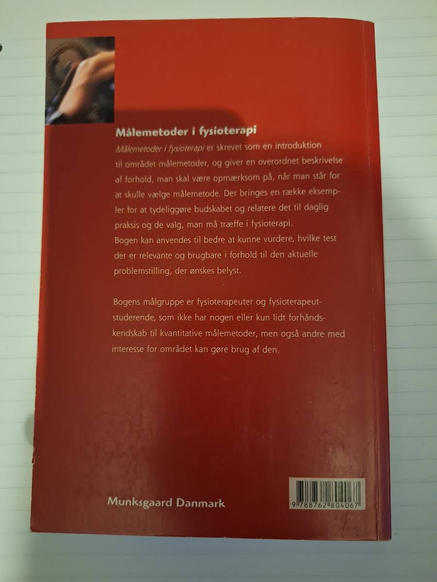 Målemetoder i fysioterapi er en introduktion til de kvantitative metoder, der anvendes i fysioterapeutisk praksis. Bogen belyser nøgleaspekter og forhold, der er vigtige at overveje ved valget af den rette målemetode. Ved at inddrage konkrete eksempler knyttet til daglig klinisk praksis, understreges, hvordan metoderne kan anvendes til at træffe veldokumenterede beslutninger i sundhedssektoren. Målet med bogen er at give fysioterapeuter og studerende – samt andre med interesse for området – en solid forståelse for, hvordan man vurderer og udvælger relevante tests. Med sine 112 sider tilbyder denne første udgave et overskueligt og praktisk redskab til at navigere i den ofte komplekse verden af fysioterapeutiske målemetoder.