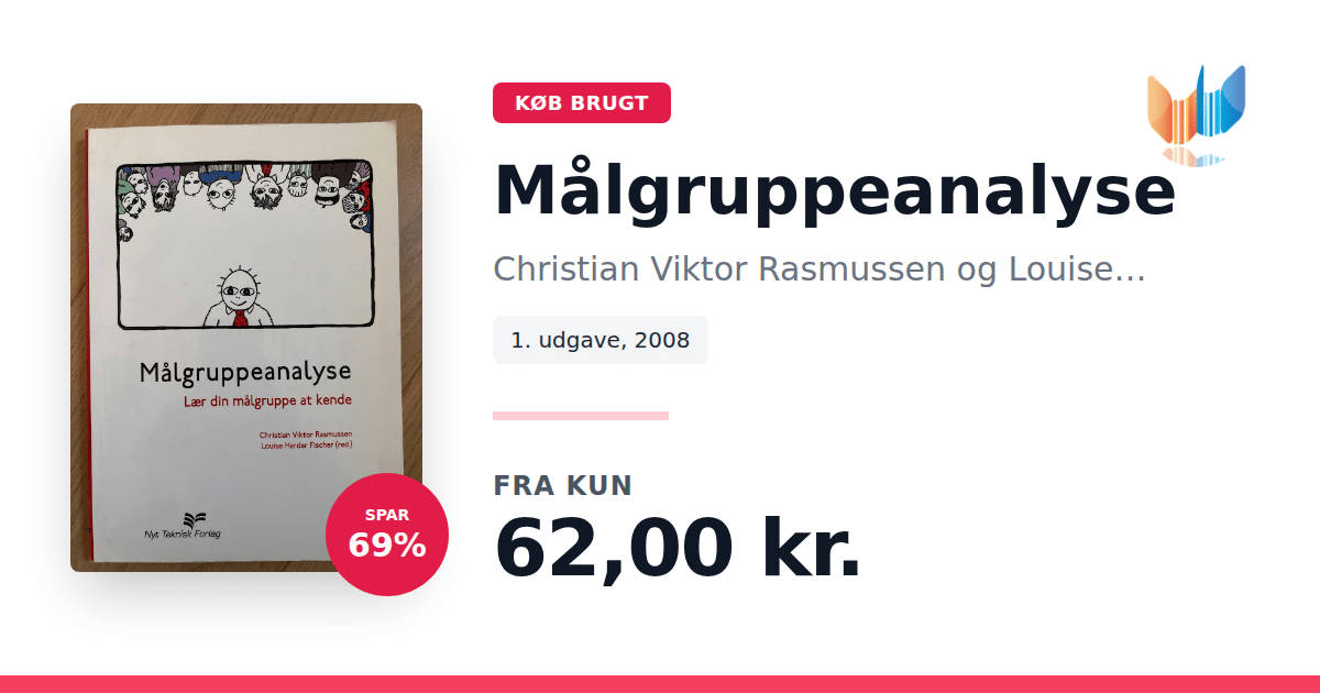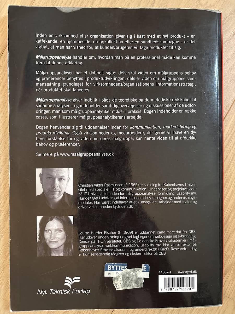 Målgruppeanalyse giver en dybdegående introduktion til, hvordan man professionelt kan afklare, om et nyt produkt – hvad enten det er en kaffekande, en hjemmeside, en tøjkollektion eller en sundhedskampagne – vil blive modtaget af den tiltænkte kunde eller bruger. Bogen forklarer, hvordan en målgruppeanalyse både kan informere produktudviklingen og danne grundlag for virksomhedens eller organisationens kommunikationsstrategi ved lanceringen af et nyt produkt. Forfatterne Christian Viktor Rasmussen og Louise Harder Fischer præsenterer en række teoretiske og metodiske redskaber, som understøtter udførelsen af en vellykket målgruppeanalyse, samtidig med at de diskuterer de praktiske udfordringer, analytikere kan støde på. Med indslag af illustrative cases er denne bog et værdifuldt redskab for studerende inden for kommunikation, markedsføring og produktudvikling samt for professionelle, der ønsker at opnå en dybere forståelse af deres målgruppe.