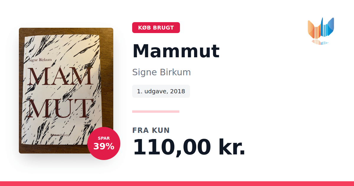 Lige nu kan du købe "Mammut" af Signe Birkum til kun 110,00 kr. Du sparer hele 39% af nyprisen! Bogen du ser her er brugt, og i perfekt stand. Vi har i øjeblikket kun et enkelt eksemplar til salg af "Mammut", så slå til mens du kan!