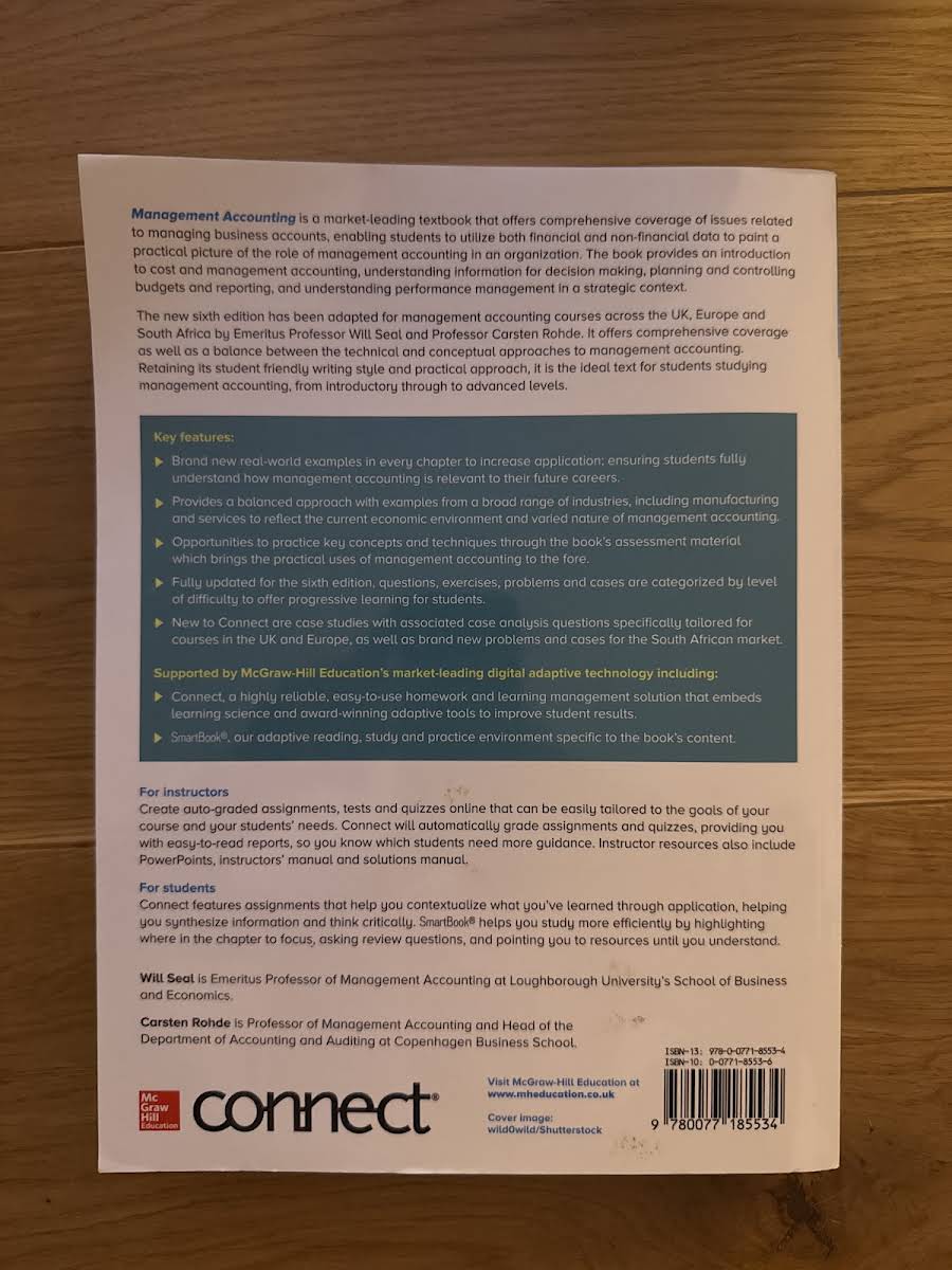 • Management Accounting, Will Seal, Carsten Rohde, Ray Garrison, Eric Noreen, 9780077185534