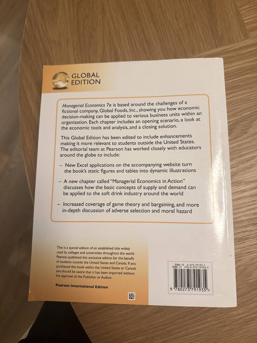 Managerial Economics, Global Edition is designed for upper-level undergraduate and first-year MBA courses in managerial and applied economics. This comprehensive text guides readers through a clear, linear progression of microeconomic theory, ensuring that the underlying concepts remain consistent and relevant throughout. Enhanced for international use, this edition tailors its content and examples to resonate with students from diverse backgrounds. Recognizing the importance of practical skills in today’s job market, the authors have integrated innovative Excel Applications that transform static figures and tables into dynamic, interactive illustrations. With contributions from Paul Keat, Philip Young, and Steve Erfle, this edition from Pearson Education Limited offers both theoretical rigor and practical tools, preparing students to analyze and apply economic concepts with increased confidence.