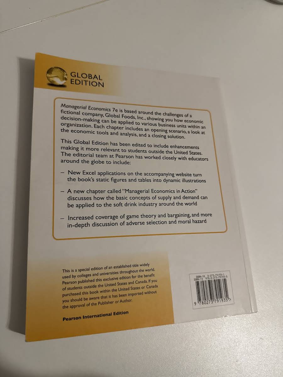 Managerial Economics, Global Edition is designed for upper-level undergraduate and first-year MBA courses in managerial and applied economics. This comprehensive text guides readers through a clear, linear progression of microeconomic theory, ensuring that the underlying concepts remain consistent and relevant throughout. Enhanced for international use, this edition tailors its content and examples to resonate with students from diverse backgrounds. Recognizing the importance of practical skills in today’s job market, the authors have integrated innovative Excel Applications that transform static figures and tables into dynamic, interactive illustrations. With contributions from Paul Keat, Philip Young, and Steve Erfle, this edition from Pearson Education Limited offers both theoretical rigor and practical tools, preparing students to analyze and apply economic concepts with increased confidence.