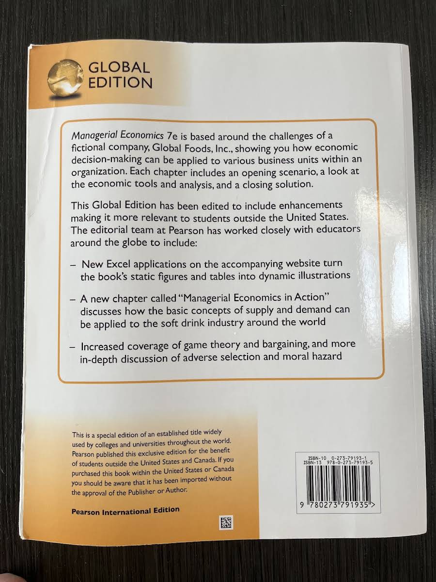 Managerial Economics, Global Edition is designed for upper-level undergraduate and first-year MBA courses in managerial and applied economics. This comprehensive text guides readers through a clear, linear progression of microeconomic theory, ensuring that the underlying concepts remain consistent and relevant throughout. Enhanced for international use, this edition tailors its content and examples to resonate with students from diverse backgrounds. Recognizing the importance of practical skills in today’s job market, the authors have integrated innovative Excel Applications that transform static figures and tables into dynamic, interactive illustrations. With contributions from Paul Keat, Philip Young, and Steve Erfle, this edition from Pearson Education Limited offers both theoretical rigor and practical tools, preparing students to analyze and apply economic concepts with increased confidence.