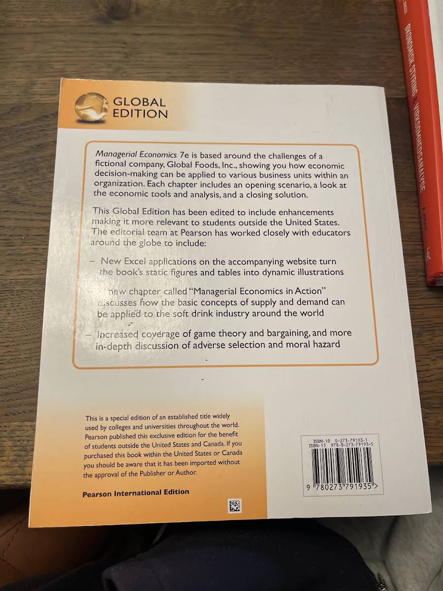 Managerial Economics, Global Edition is designed for upper-level undergraduate and first-year MBA courses in managerial and applied economics. This comprehensive text guides readers through a clear, linear progression of microeconomic theory, ensuring that the underlying concepts remain consistent and relevant throughout. Enhanced for international use, this edition tailors its content and examples to resonate with students from diverse backgrounds. Recognizing the importance of practical skills in today’s job market, the authors have integrated innovative Excel Applications that transform static figures and tables into dynamic, interactive illustrations. With contributions from Paul Keat, Philip Young, and Steve Erfle, this edition from Pearson Education Limited offers both theoretical rigor and practical tools, preparing students to analyze and apply economic concepts with increased confidence.