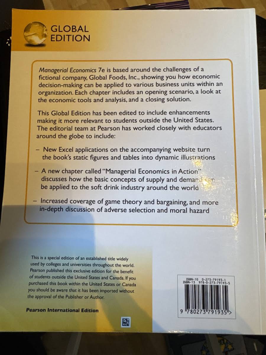 Managerial Economics, Global Edition is designed for upper-level undergraduate and first-year MBA courses in managerial and applied economics. This comprehensive text guides readers through a clear, linear progression of microeconomic theory, ensuring that the underlying concepts remain consistent and relevant throughout. Enhanced for international use, this edition tailors its content and examples to resonate with students from diverse backgrounds. Recognizing the importance of practical skills in today’s job market, the authors have integrated innovative Excel Applications that transform static figures and tables into dynamic, interactive illustrations. With contributions from Paul Keat, Philip Young, and Steve Erfle, this edition from Pearson Education Limited offers both theoretical rigor and practical tools, preparing students to analyze and apply economic concepts with increased confidence.